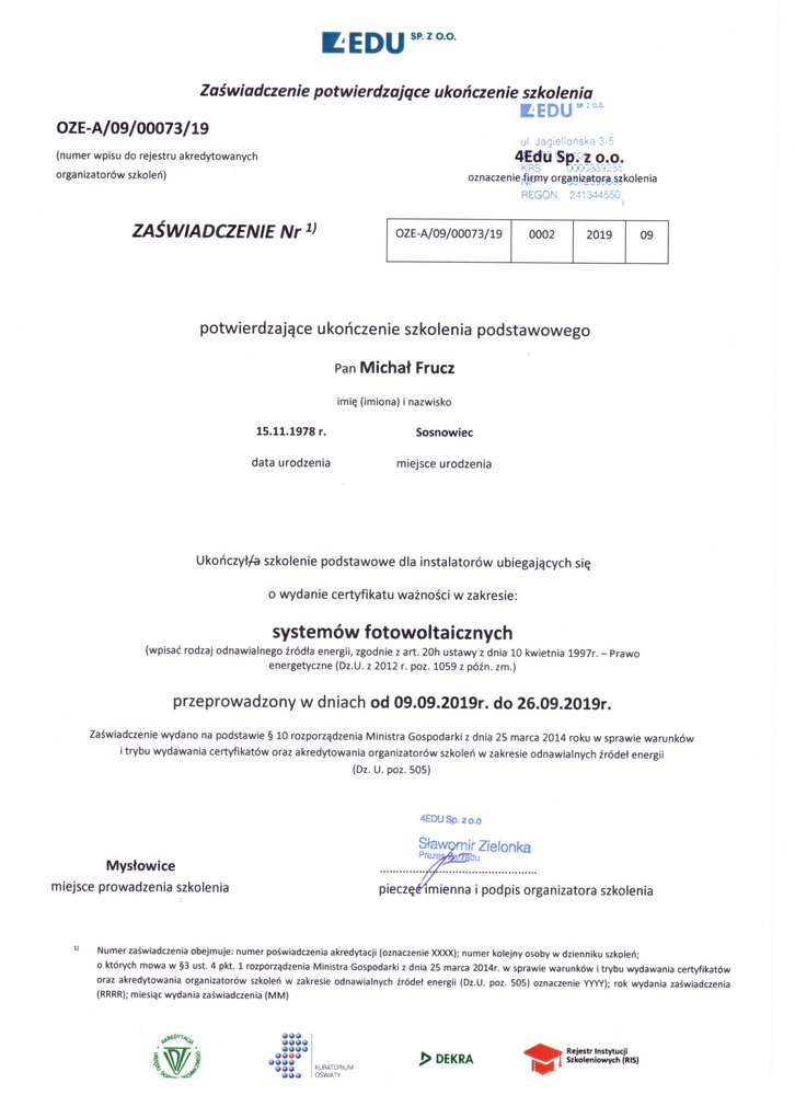 POTWIERDZONE KOMPETENCJE PROFESJONALIZM NASZYCH USŁUG PODPARTY JEST WAŻNYMI ZAŚWIADCZENIAMI